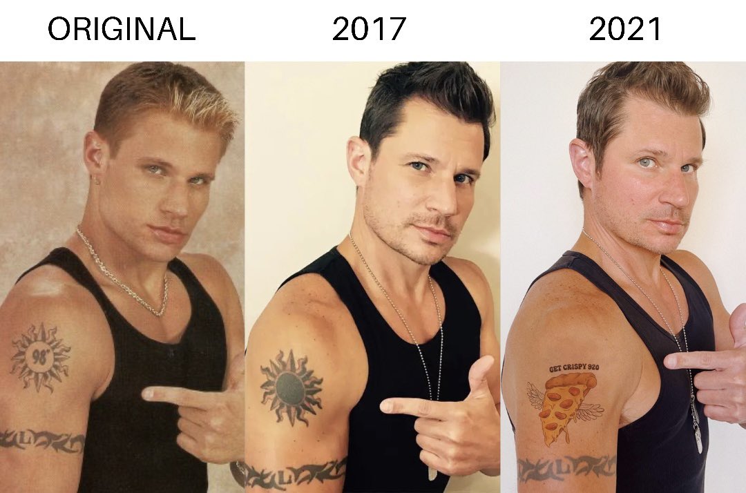 Web updated august 12, 2017 for years, i relied on nick lachey's infamous 98 degrees sun tattoo to tell me what temperature it is. Web beauty & style inked words: Unveiling the artistry of script tattoos by: Web nick lachey covered up the 98 degrees portion of his sun tattoo several years back and now he’s joking about it by.